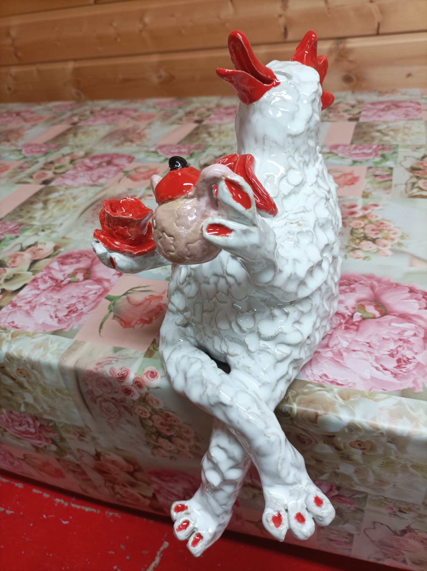 Tällä kanala on kahavi pannu josta kaataa iteleen kahavia mukava yksityis kohta puutarhassa korkeus n.30-35 cm