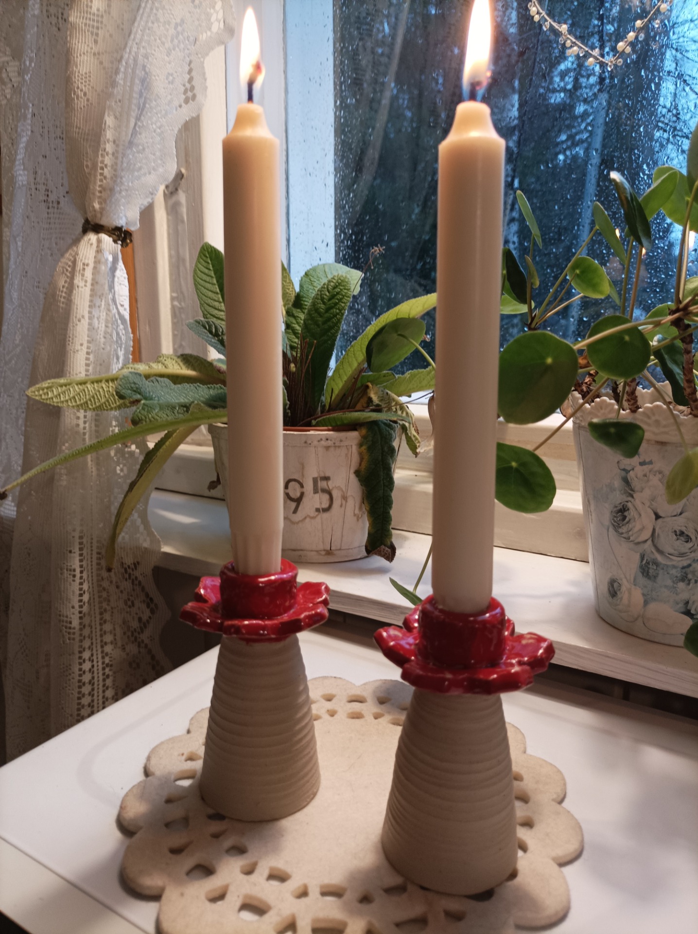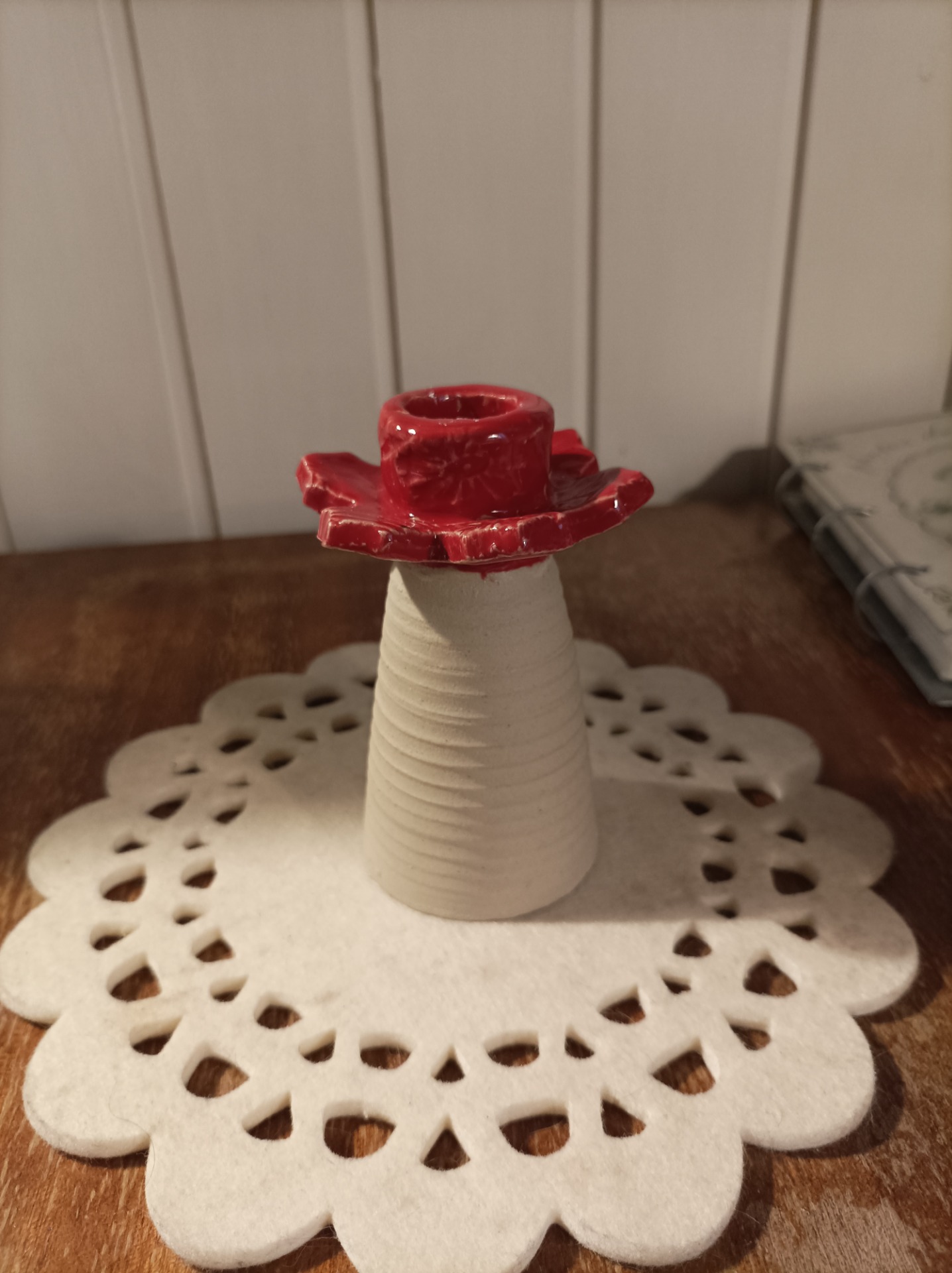 kaunis kynttilän jalka jossa jalka dreijattu yhdistettynä punainen tähti ja kolo kynttilälle